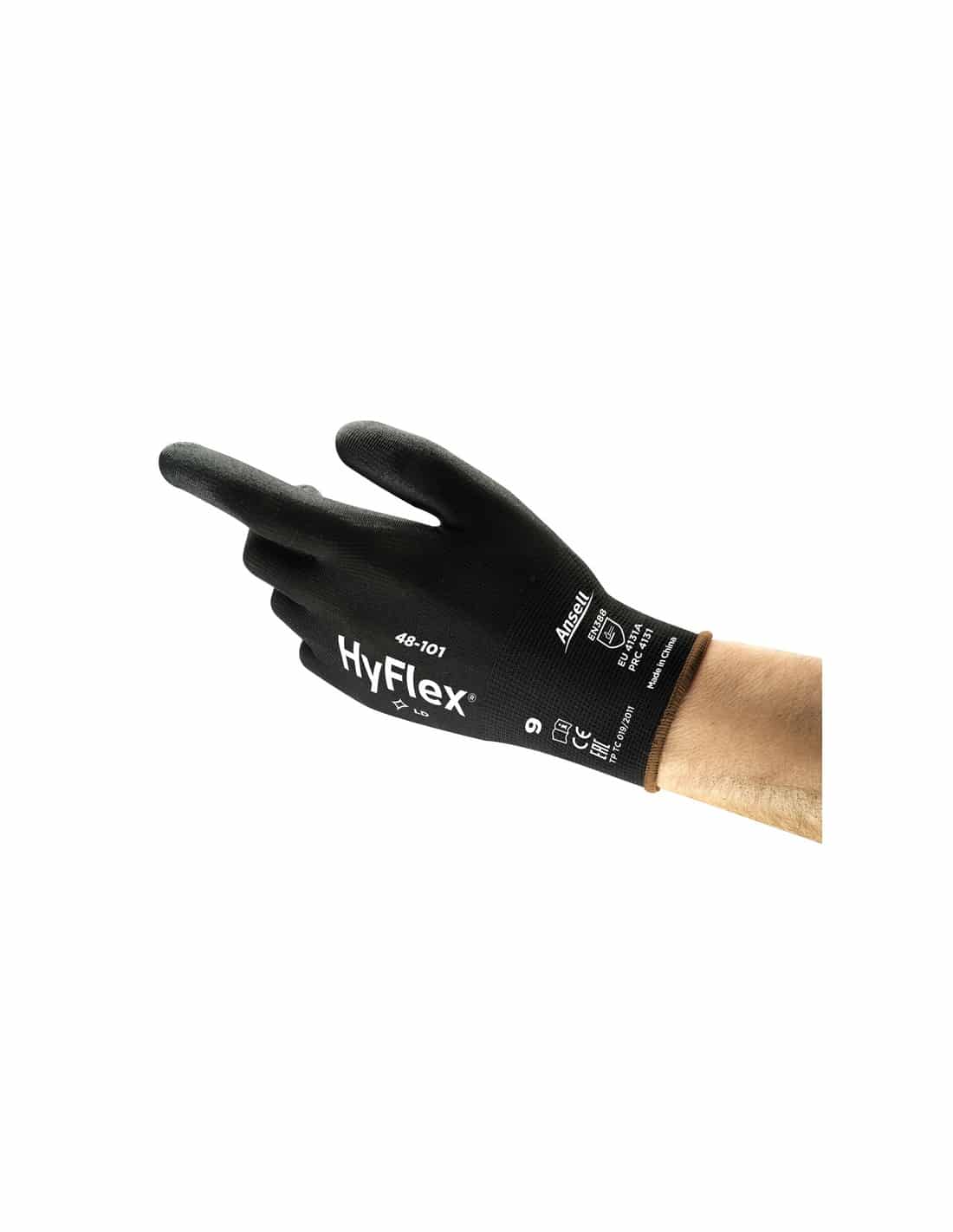 ANSELL GUANTI HYFLEX 48-101 NERO NYLON RIVEST.PU EX SENSILITE